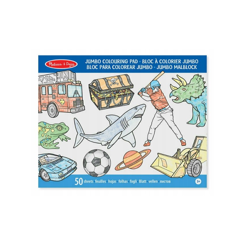 Duży blok kolorowanka. Zawiera kontury po jednej stronie, a puste miejsce po drugiej - dzięki czemu arcydzieło dziecka nie rozmazuje się! Kolorowanka ma rozmiar aż 28 x 35,5cm, można wyrywać strony z kolorowanki, aby więcej niż jedno dziecko mogło kolorować jednocześnie. Pięćdziesiąt ulubionych motywów dzieci, w tym zwierzęta, sport i pojazdy, czekają na pokolorowanie.