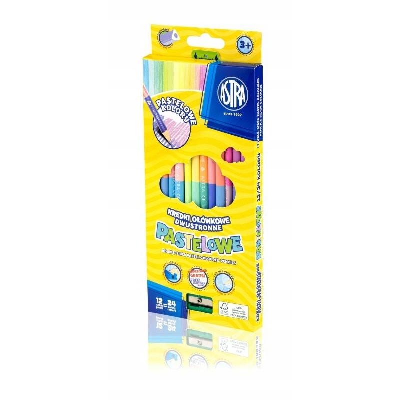 Kredki ołówkowe trójkątne dwustronne pastelowe 12-24 ASTRA