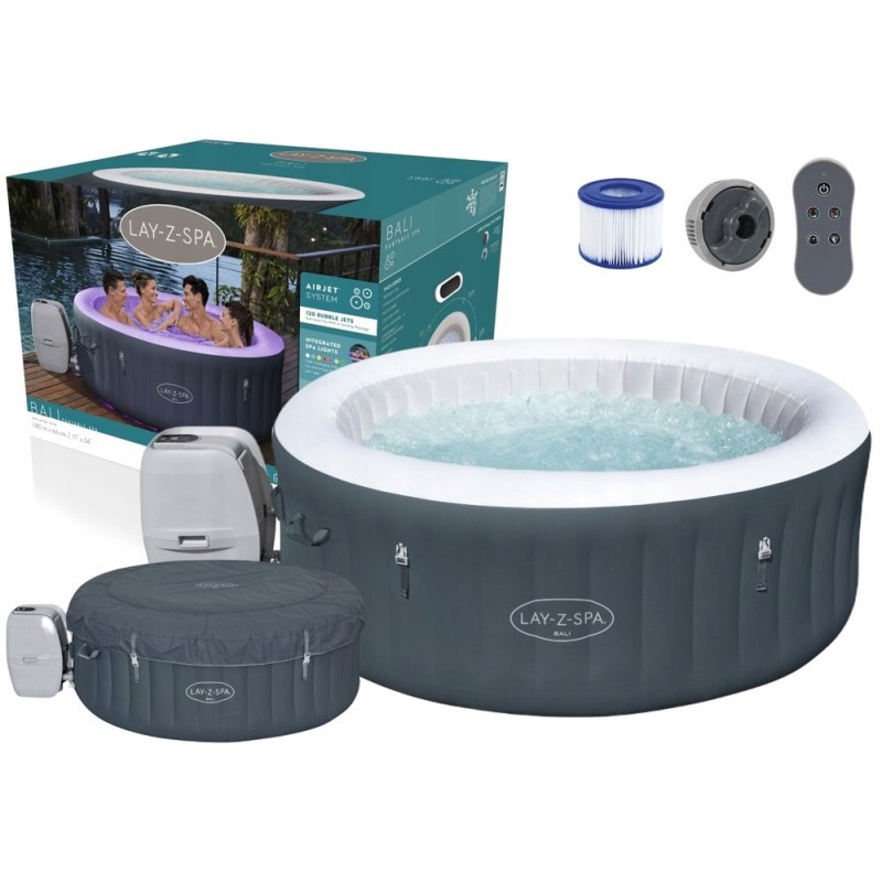 Basen ogrodowy to za mało? Już teraz możesz cieszyć się luksusem w domu zaopatrując się w SPA z podgrzewaczem wody. Dmuchane Lay-Z marki Bestway model Bali, to jedyne w swoim rodzaju SPA, które możesz mieć w swoim przydomowym ogrodzie lub domu Nawet w chłodniejsze dni możesz wskoczyć do ciepłej wody. Ten basen z bąbelkami to orzeźwienie i niesamowity odpoczynek. Zbiornik charakteryzuje się grubymi, nadmuchiwanymi ścianami. Podczas korzystania z spa będą wygodnym oparciem dla Ciebie i Twoich najbliższych.