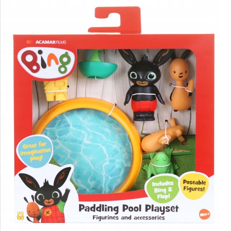 Ten doskonale wykonany zestaw to wymarzony prezent dla wszystkich dzieci, które lubią zabawy w wodzie... i uwielbiają króliczka Binga! Tym razem mogą dołączyć do Binga i Flopa, którzy właśnie postanowili popluskać się w baseniku.