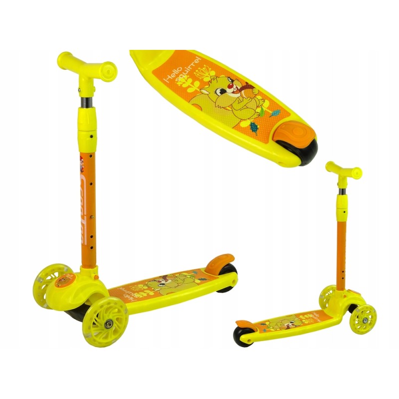 Hulajnoga Balansowa Trójkołowa Świecące Koła Żółta Wiewiórka