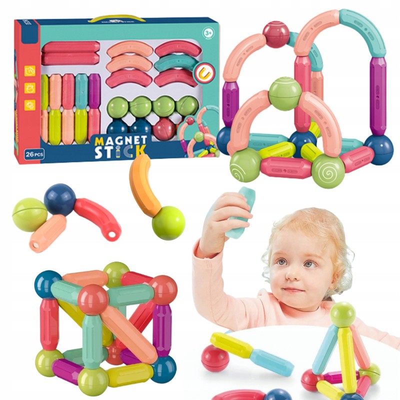 Ten zestaw magnetyczny to świetna zabawka, która rozwija wyobraźnię, umiejętności konstrukcyjne i edukacyjne. Zestaw zawiera 26 różnorodnych elementów, które pozwolą dziecku na tworzenie nieograniczonych konstrukcji.