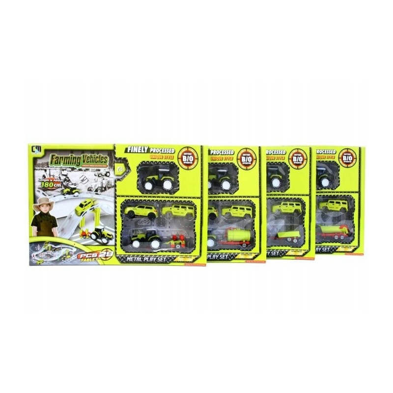 Tor samochodowy od EURO-TRADE. Zabawka łatwa w konstrukcji. Składa się z elementów konstrukcyjnych i dodatkowych akcesoriów, w skład których wchodzą: znaki, stacja benzynowa, sygnalizacja świetlna, elementy imitujące oświetlenie, plastikowe drzewka, baner. W opakowaniu znajdziemy również zestaw samochodzików i pojazdów rolniczych (dwa traktory).