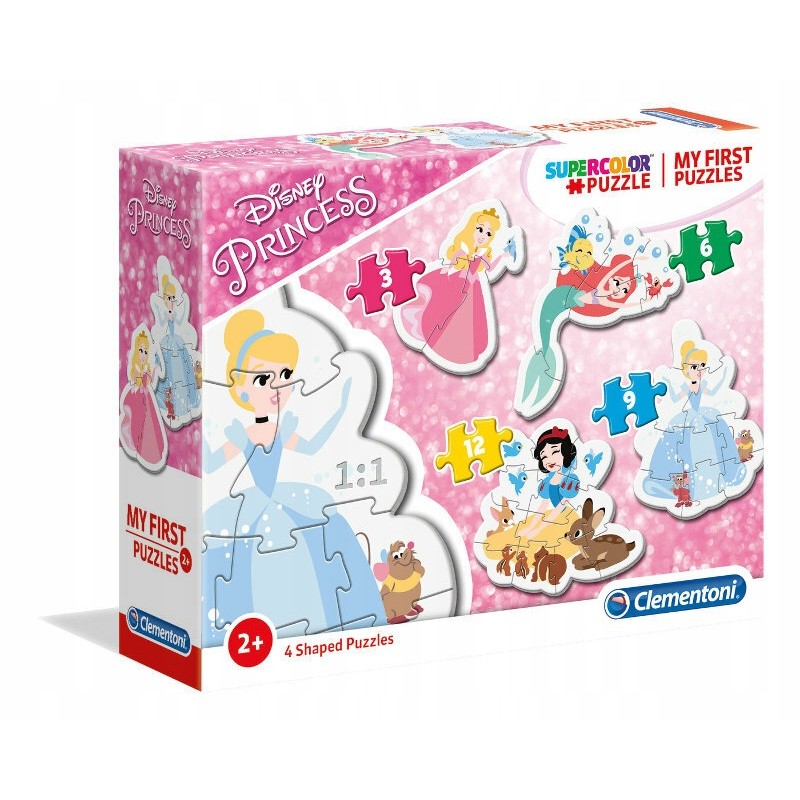 4 kształtowe układanki o rosnącym poziomie trudności. Wykonane z grubego i wytrzymałego kartonu. Tylna strona każdego elementu jest zacieniona, a także jednokolorowa, ułatwiając układanie każdego z obrazków. Wymiary opakowania: 21 × 26,5 × 7,2 cm Wiek: 2+