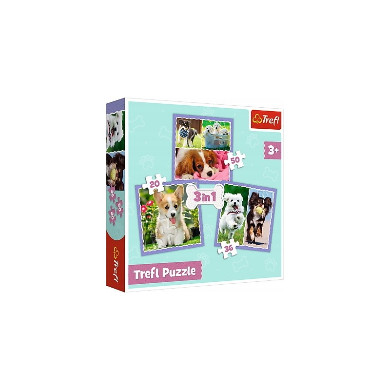 Urocze pieski to puzzle dla dzieci składające się z 3 niezależnych układanek, zaprojektowane z myślą o wszystkich miłośnikach zwierzaków. Po ułożeniu układanek powstaną obrazki o wymiarach 200x195 mm. Zróżnicowana liczba elementów pozwala na zabawę zarówno młodszym, jak i nieco starszym dzieciom.