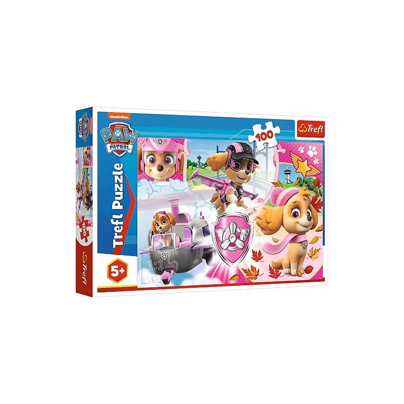 Puzzle 100 elementów z bohaterami bajki Psi Patrol. Po ułożeniu powstanie obrazek o wymiarach 41x27,5 cm. Wysoką jakość, nasycenie kolorów i bezpieczeństwo układania zapewnia papier odbijający światło, który pokryty jest ekologicznymi farbami spożywczymi.