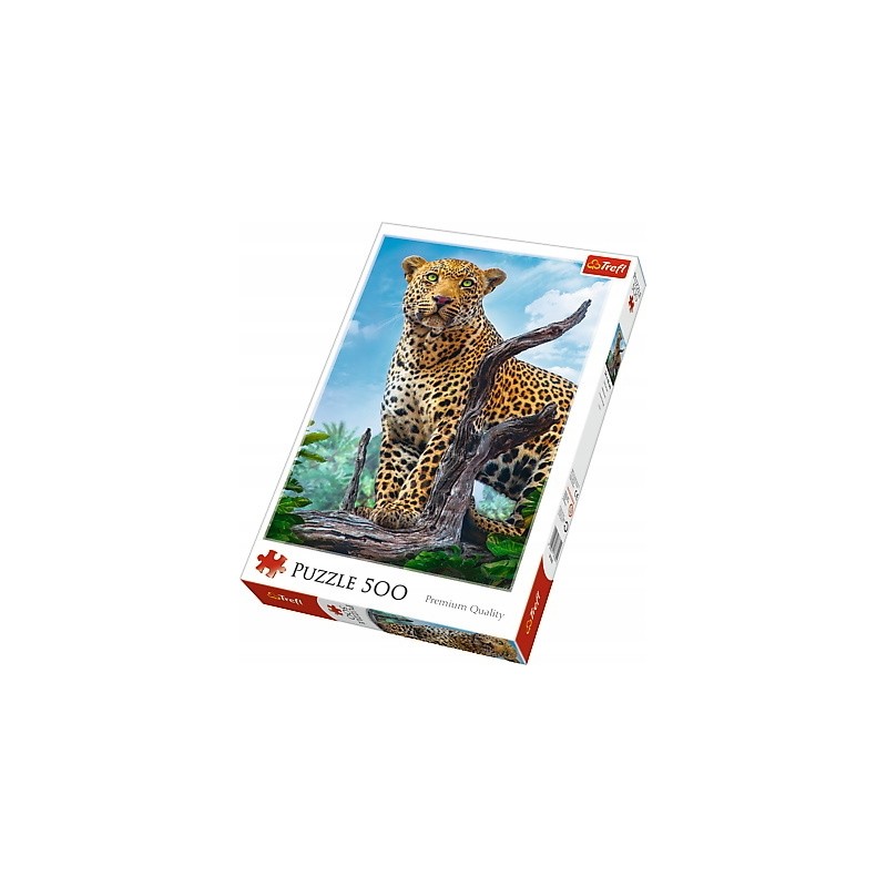 Puzzle 500 elementów przedstawiające dzikiego lamparta. Po ułożeniu powstanie obrazek o wymiarach 48x34 cm. Wysoką jakość, nasycenie kolorów i bezpieczeństwo układania zapewnia papier odbijający światło, pokryty ekologicznymi farbami spożywczymi. Dowolnie komponuj wzory i stwórz wyjątkową domową galerię. Ostrzeżenie! Istnieje ryzyko zadławienia się małymi elementami.