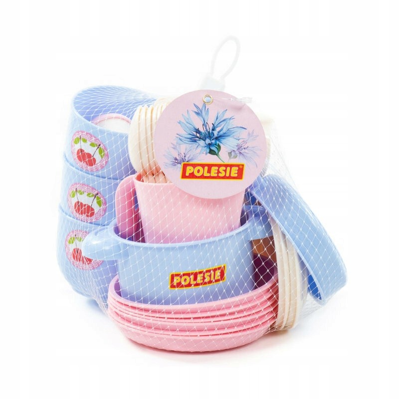 Zestaw naczyń dla 6 osób w siatce. W zestawie 38 elementów: pojemniki na przyprawy, kubki, sztućce, patelnia i garnek z pokrywkami, dzbanek na napój, talerze. Wymiary opakowania: 18,0 ? 17,2 ? 16,5 cm Wiek: 1+
