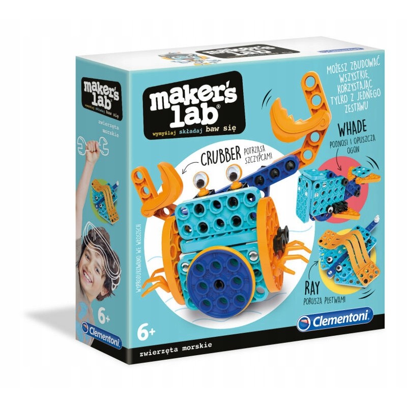 • Fantastyczny zestaw konstrukcyjny dla małych dzieci, za pomocą którego można jednocześnie stworzyć 3 modele morskich zwierząt: kraba, wieloryba i płaszczkę.